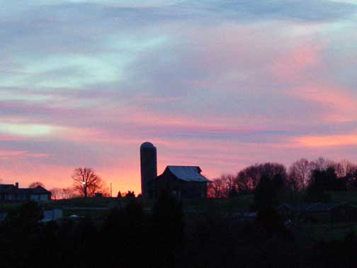 Scenic Beauty- Here's an old barn and silo, casting a silhouette against a beautiful Tennessee sunset. Notice the setting sun seems to be captured in the branches of the tree in the background.