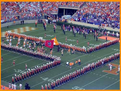 Running thru the T - The University of Tennessee Volunteers football team starts the traditional "Run through the T" before a crowd of over 100,000 people to start off an exciting afternoon of Volunteer football. - Picture submitted and copyrighted by Sabrina English of Knoxville.